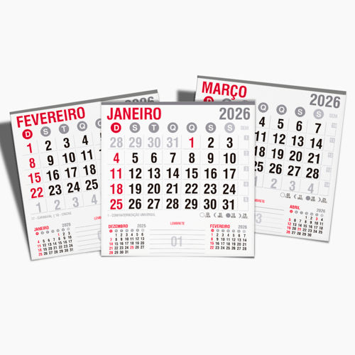 Modelo tradicional, prático e funcional, ideal para montagem de folhinhas, brindes simples, agendas ou uso em casa e no escritório.
