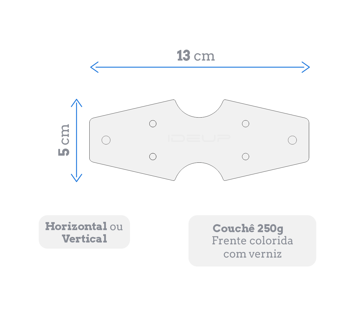Acabamento: 2 Furos de 5mm + 4 Furos de 1mm + Vinco